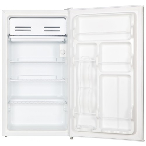 Холодильник з морозильною камерою Elenberg MR-84 виробляється в сучасному дизайні в традиційному білому кольорі. Однодверний апарат класу енергоспоживання А + виготовлений в окремому виконанні з Двері, що дозволяє встановити його в найбільш зручному місці. Загальний обсяг моделі становить 93 літри, з яких 83 літри доводиться на холодильну камеру з автоматичним (краплинним) розморожуванням, а 10 літрів - на розташований всередині верхній морозильний відсік, видаляти лід в якому слід в ручному режимі. Холодильник з морозильною камерою Elenberg MR-84 обладнаний надійним поршневим компресором, що працює з низьким рівнем шуму - до 42 дБ. Продукти в ньому викладаються на три скляних полиці і в ящик для овочів і фруктів холодильного відділення, а також на полички в двері. Їжа для тривалого зберігання визначається в морозильну секцію, яка за добу здатна заморозити до 5 кг їжі.
