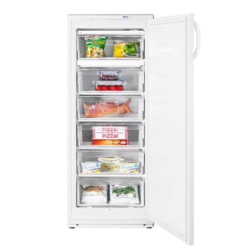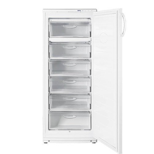 Морозильна камера ATLANT М 7184-501 - дітище білоруських виробників, вже понад півстоліття займаються виробництвом побутової холодильну техніку. Традиції високої якості поряд з сучасними технічними характеристиками роблять все моделі заслужено затребуваними на українському ринку. Двері агрегату, виконаного в білому кольорі, забезпечені вертикальної напівкруглої ручкою і можуть переважуватися на іншу сторону. Пристрій класу енергоспоживання А + обладнано надійним поршневим компресором, що працює з низьким рівнем шуму - до 39 дБ. Для зручного розміщення продуктів всередині знаходяться шість прозорих висувних контейнерів. Завдяки функції швидкого заморожування, яка включається автоматично, а вимикається автоматично через 48 годин, їжа тривалий час зберігає свої корисні властивості. Морозильна камера ATLANT М 7184-501 здатна заморозити до 20 кг їжі на добу, при цьому автономно зберігає холод протягом 14 годин. Розморожується вона звичайним ручним способом.