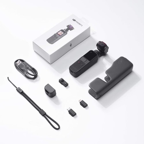 | Другое | DJI Pocket 2, Миниатюрный джойстик DJI Pocket 2, Крышка DJI Pocket 2, Крепление для штатива DJI Pocket 2 (1/4"), Ремешок на запястье DJI, Адаптер для смартфона (Lightning), Адаптер для смартфона (USB-C), Кабель питания |