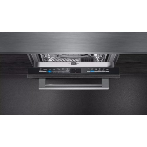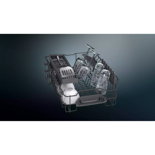 Посудомийна машина Siemens SR61IX05KE проводиться в з чорною торцевої електронною панеллю керування. Модель класу енергоспоживання А + володіє габаритної шириною 45 см і повністю вбудовується в кухонні меблі. Пристрій вміщує 9 комплектів посуду, для миття яких потрібно 9,5 літрів води. Допускається неповне завантаження внутрішньої камери, тоді споживання води і електроенергії скорочується. Прилад укомплектований безщітковим двигуном iQdrive, що відрізняється надійністю і тихою роботою - рівень шуму не перевищує 48 дБ. Модель обладнана двома коромислами-розбризкувачами duoPower з широкою зоною розподілу води, гідравлічною системою speedMatic і регульованою по висоті верхній кошик. Посудомийна машина Siemens SR61IX05KE оснащена таймером відстрочки старту на 3, 6 і 9 годин, світловим індикатором ходу програми, а також захисною системою від підтікання та переливу AquaStop.