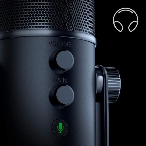 | Додатково | Мікрофон оснащений вбудованим амортизатором, який допомагає зменшити вібрації та шуми, що передаються через підвісне мікрофонне кріплення. Razer Seiren Elite має регульовану гучність та кнопку заглушення, розташовані зручно на передній панелі. Ви можете швидко налаштувати гучність та вимкнути звук за необхідності, без необхідності використовувати додаткові програми чи налаштування. |