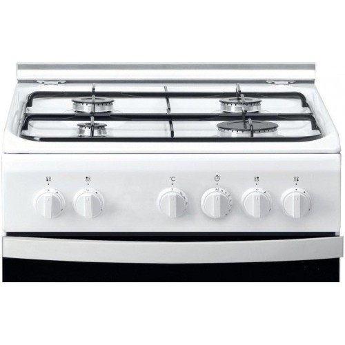 Газова плита Indesit IS5G0PMW/E виготовлена в сучасному лаконічному дизайні в білому кольорі. Її робоча поверхня покрита високоміцної емаллю. Всі 4 конфорки обладнані захисною системою газ-контролю і запалюються функцією електричного запалювання. Посуд розміщується на міцній і довговічній решітці з емальованої сталі. Металева кришка повністю закриває варильну поверхню після роботи, а під час приготування страв оберігає від бризок кухонну стіну. Духовка об'ємом 68 літрів закривається скляними дверцятами з широкою напівкруглою ручкою. Для ефективного очищення скляна панель легко і просто знімається. Вбудований вентилятор створює постійну циркуляцію гарячого повітря, завдяки чому в усьому внутрішньому просторі камери встановлюється рівна температура і продукти прогріваються однаково з усіх сторін. Управляється газова плита Indesit IS5G0PMW/E за допомогою ергономічних поворотних регуляторів на передній панелі.