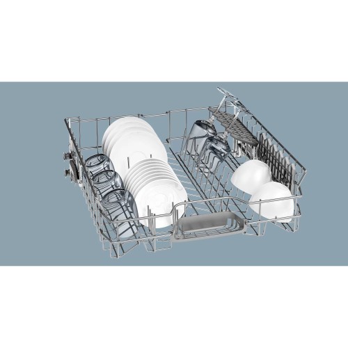 Посудомийна машина Siemens SN615X03EE має конструкцію, що повністю вбудовується в кухонні меблі, і відноситься до класу енергоспоживання А++. Вона впорається з миттям 14 стандартних комплектів посуду, для чого буде потрібно 9,5 літрів води. Залежно від типу і ступеня забрудненості посуду для якісного його миття слід вибрати одну з 6 вбудованих автоматичних програм, причому кожна може бути триразово прискорена функцією VarioSpeed Plus. Поліпшити результат роботи моделі допоможе опція попереднього полоскання (замочування) і вбудований фільтр, який сам очищується. Щоб раціонально розмістити посуд різних розмірів, в тому числі великих габаритів, у верхньому кошику пристрою передбачена можливість регулювання розміщення полиць за рівнями. Функція відкладеного старту від 1 до 24 годин дає можливість зручно планувати свій час. Технологія захисту від аварійних протікань та переливу AquaStop зупинить подачу води в позаштатних ситуаціях.