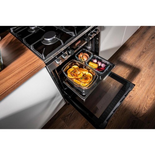 | Додатково | Швидкий розігрів духовки: 150 ° С за 3 хвилини. Очищення духовки паром, емаль легкого очищення. Рецепти на двері духовки. Телескопічні направляючі духовки. Шухляда для посуду. 11 режимів духовки |