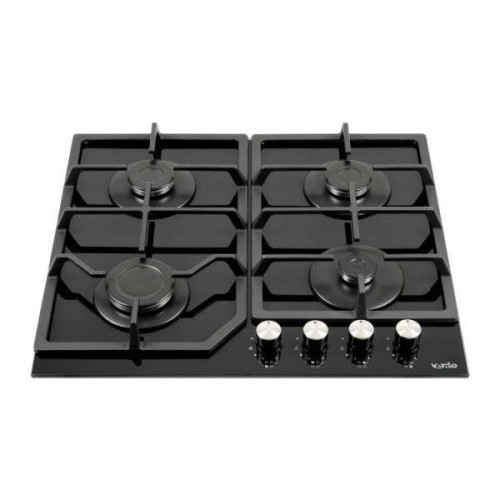 Варильна поверхня газова Ventolux HSF640-R3G (BK) виготовлена із загартованого чорного скла в стильні сучасному дизайні. У ній встановлено 4 конфорки італійської марки SABAF: велика - потужністю 2,6 кВт, дві середні по 1,7 кВт і одна мала - 1 кВт. Подача газу регулюється ергономічними механічними круглими ручками з термостійкого матеріалу бакеліта, кожна з яких оснащена функцією кнопки живлення. Розсікачі газу на всіх конфорках мають товщину 3 мм. Зручна і міцна чавунна решітка також є цікавим дизайнерським рішенням, при цьому готувати на ній можна і в об'ємній габаритної посуді. Варильна поверхня Ventolux HSF640-R3G (BK) допускає використання балонного газу - для цього в комплектацію включені французькі жиклери Sourdillon.