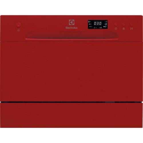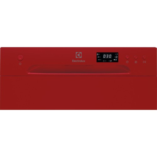 Окремо розташована посудомийна машина Electrolux ESF2400OH - компактна модель оригінального червоного кольору завширшки 43,8 см класу енергоспоживання А+. Пристрій обладнаний однією корзиною, розрахованою на разове завантаження 6 комплектів посуду, для миття якого потрібно в середньому 6,5 літрів води. 6 вбудованих програм, що функціонують в 4 температурних режимах, надають користувачеві можливість вибрати оптимальну для кожного завантаження. Слід відзначити 20-хвилинну експрес-програму, яка стане особливо корисною під час прийому гостей. Прилад з механічним управлінням обладнаний таймером відклаженого старту і дисплеєм, який відображає час, що залишився до завершення циклу, а також наявність солі і ополіскувача. Окремо розташована посудомийна машина Electrolux ESF2400OH може підключатися до гарячої води і оснащена системою захисту від протікання AquaStop.